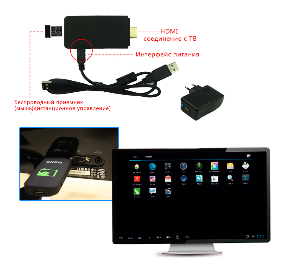 Новинка оснащена модулем Wi-Fi стандарту 802.11 b/g/n та інтерфейсом HDMI для з'єднання з монітором, при цьому процес підключення не вимагає установки спеціальних драйверів - він здійснюється автоматично.
